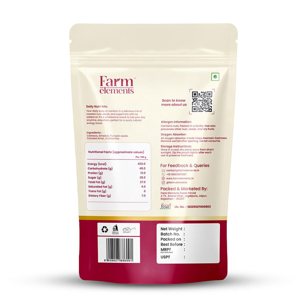 • Nutritious Blend – A balanced mix of almonds, cashews, cranberries, amla & pumpkin seeds.